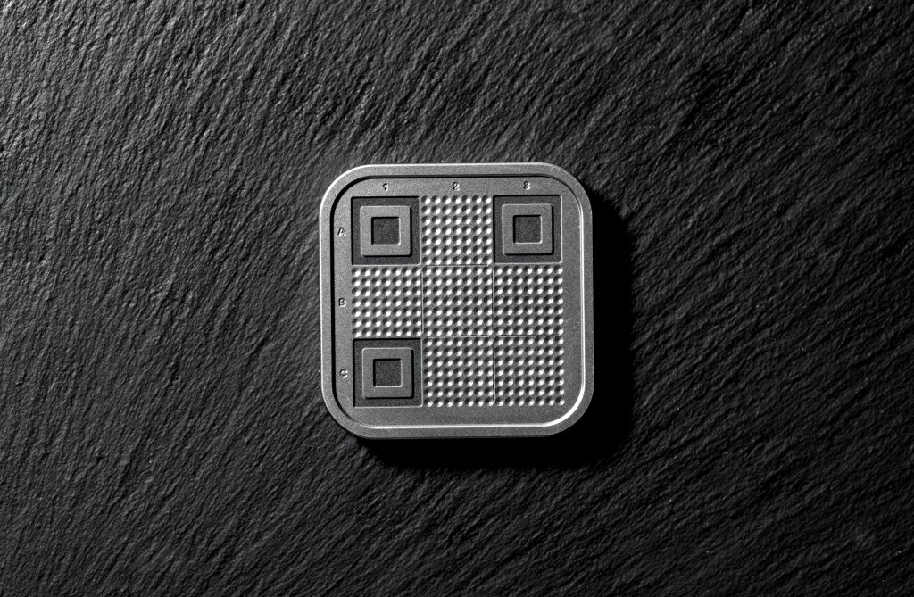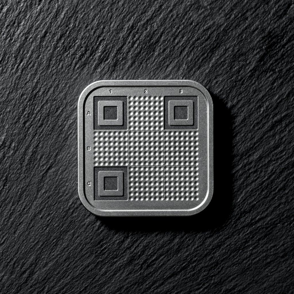 ColdQR Backup plate with a 21×21 grid. Secures a 12 word seed as a compact SeedQR for eternity.